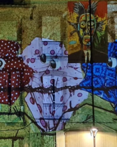 PROJECTION PUBLIQUE DE LA FRESQUE LUMINEUSE SUR LA FAÇADE DU MUSÉE