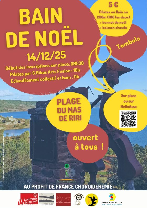 L’Association France Choroïderemie organise la 5ème édition du Bain de Noël au Salagou le Dimanche 14 Décembre 2025 à la Plage du Mas de Riri.