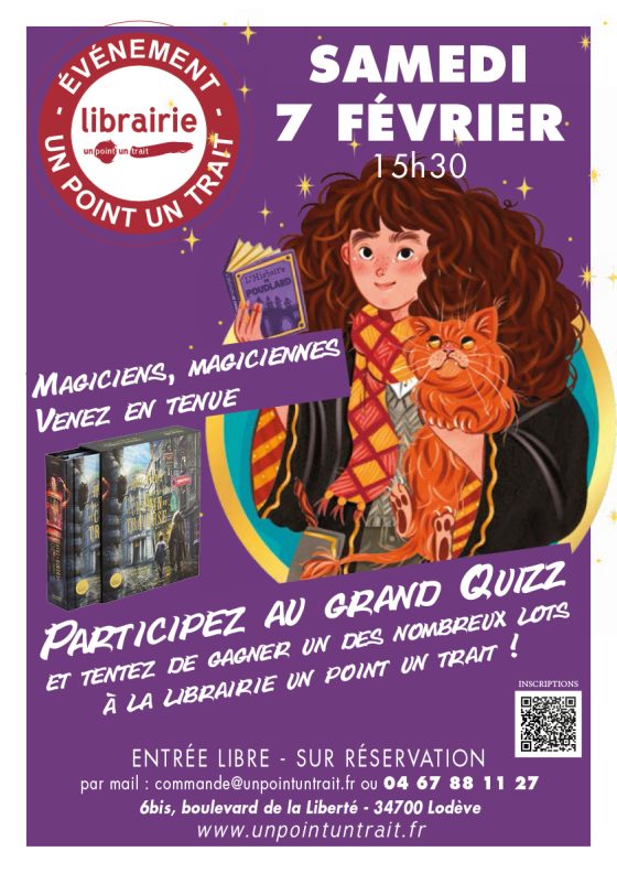 Plongez dans la magie d’un après-midi QUIZ 100% Harry Potter ! ? Testez vos connaissances, défiez les autres fans et repartez peut-être avec l’un des nombreux lots enchanteurs à gagner ! ?? Sorciers, sorcières et apprentis magiciens : sortez vos plus beaux déguisements pour ce moment inoubliable ! Les jeunes participants devront être accompagnés de leurs parents ou tuteurs. Inscrivez-vous vite et rejoignez l’aventure magique !