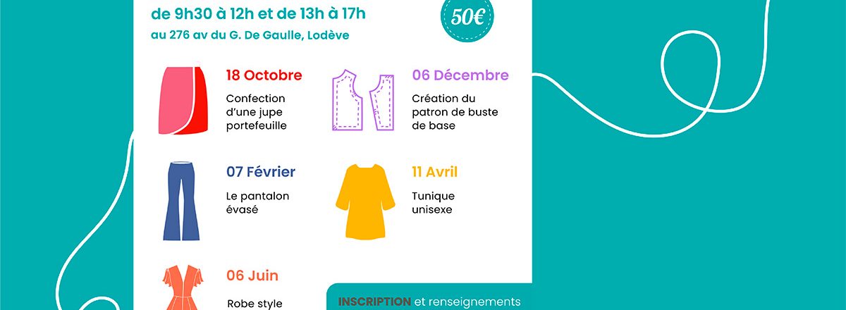 Une nouvelle série de stages, proposés par l’atelier Rembobinez, pour apprendre la confection de vêtements ! Apprenez à créer vos patrons et à confectionner les pièces phares de votre garde robe avec l’aide des couturières de Rembobinez.